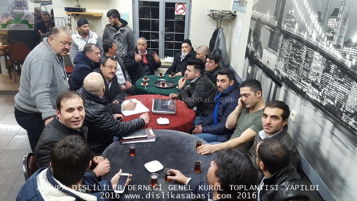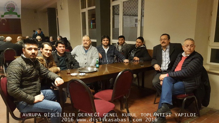 Avrupa Dislililer Dernegi Genel Kurul Toplantisi; Dernek Yönetim Kurulu Üyelerince Belçika ' nin Vervies sehrinde yapildi. Dernegimize ev sahipligi yapan kasabamizin ihtiyar delikanlilarindan ISMAIL ÇAKIL abimize ve bizleri ziyarete gelen Dislili kardeslerimize göstermis olduklari ilgi ve alakadan ötürü tesekkür ederiz.