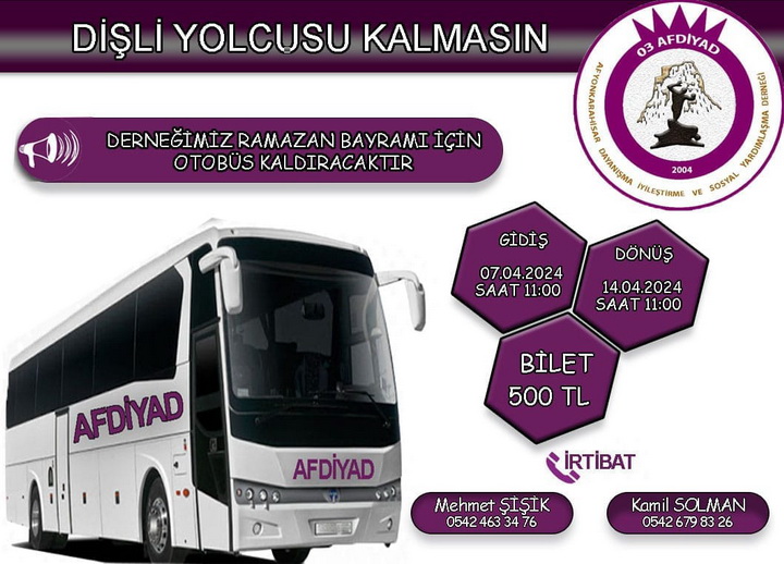 Yaklasan Ramazan Bayrami için kasabamiza gidecek hemserilerimizin için ekonomik fiyatlarla Kaynarca ' dan otobüs kaldirilacaktir.