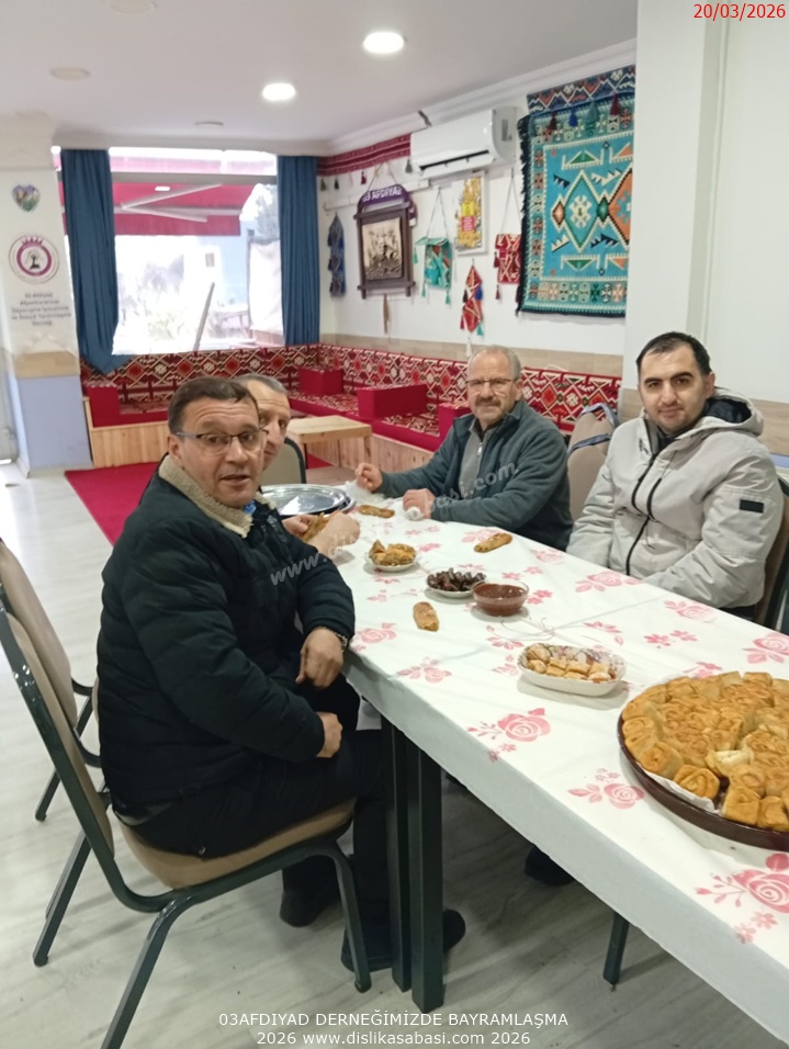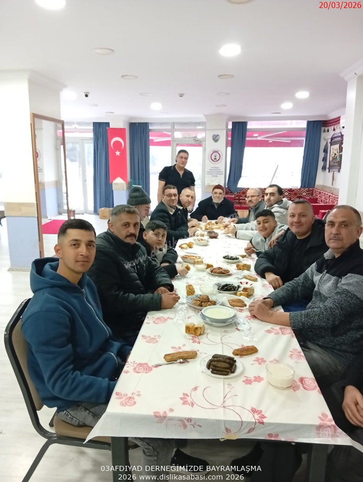 Örf ve adetlerimizden oda usulü yemek ve bayramlasmayi 03AFDIYAD dernegimiz hemserilerimizle gerçeklestirmeye devam etmektedir. Bayramlasmaya katilan tüm hemserilerimize tesekkür ederiz. Allah tutulan oruçlari kabul etsin , Ramazan Bayrami'niz mübarek olsun.