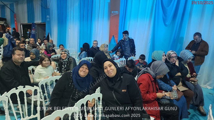 Pendik Belediyesi tarafindan ilki düzenlenen MEMLEKET GÜNLERI etkinliginde AFYONKARAHISARLILAR GÜNÜ , 03AFDIYAD dernegimizin organizasyonu ile 19 Ekim 2025 Pazar 19:00 ' da baslayan program ile Pendik Millet Bahçesi 'nde gerçeklestirilmistir.