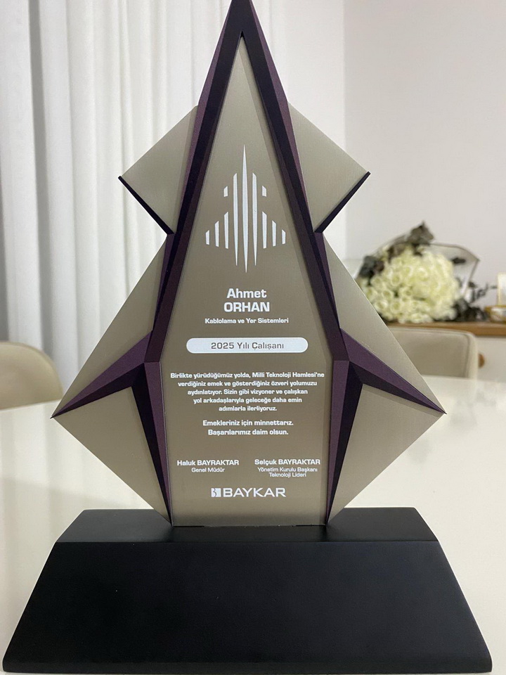 Disiplinli çalisma, sabir ve sorumluluk bilinciyle yürüttügü meslek hayatinin bir sonucu olarak ödülünü Selçuk Bayraktar'in elinden almistir.