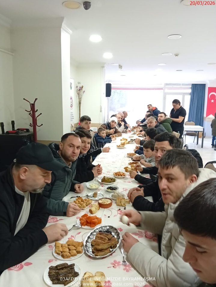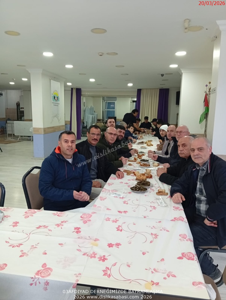 Örf ve adetlerimizden oda usulü yemek ve bayramlasmayi 03AFDIYAD dernegimiz hemserilerimizle gerçeklestirmeye devam etmektedir. Bayramlasmaya katilan tüm hemserilerimize tesekkür ederiz. Allah tutulan oruçlari kabul etsin , Ramazan Bayrami'niz mübarek olsun.